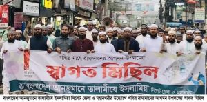 বক্তারা আরও বলেন, দ্রব্যমূল্যের ক্রমাগত উর্ধ্বগতিতে জনগণ কষ্টে দিন কাটাচ্ছেন। নিম্নবিত্ত-মধ্যবিত্ত শ্রেণি জীবন পরিচালনায় অসহায় হয়ে পড়েছেন। রামাদানকে কেন্দ্র করে জনগণের কষ্ট লাগবে দ্রব্যমূল্য সহনীয় পর্যায়ে নিয়ে আসতে সরকারকে দায়িত্বশীল ভূমিকা পালন করতে হবে। পাশাপাশি রামাদানের পবিত্রতা রক্ষায় দিনের বেলা হোটেল-রেস্তোরাঁ বন্ধ রাখা, শহর ও রাস্তাঘাটে সাঁটানো অশ্লীল পোস্টার ও বিলবোর্ড অপসারণে সরকারকে কার্যকর উদ্যোগ গ্রহণ করতে হবে। সর্বোপরি, মাহে রামাদানের পবিত্রতা রক্ষায় সকলকে এগিয়ে আসার উদাত্ত আহবান জানান বক্তারা।