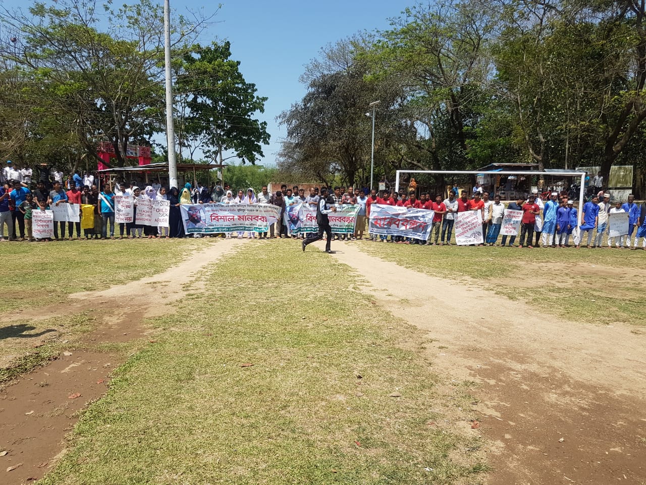 রকি দেবের উপর হামলার প্রতিবাদে মানববন্ধন