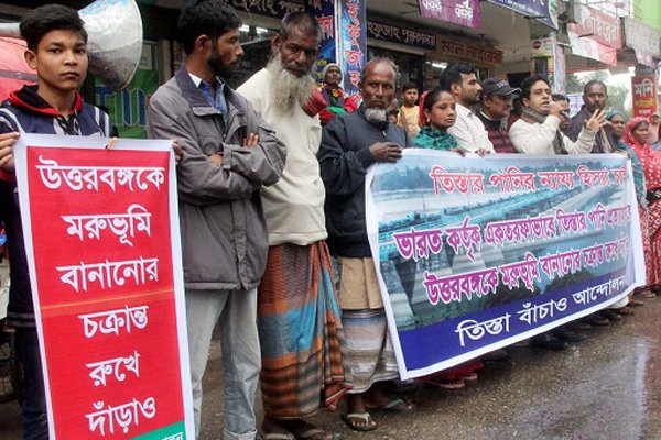 তিস্তার পানির ন্যায্য হিস্যার দাবিতে মানববন্ধন